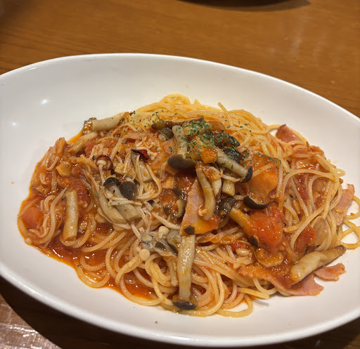 Read more休日の11:10くらいに来店したが、駐車場は半分以上が埋まっていました。お客さんも3.4組はいました。お冷などはセルフ、タッチパネルでの注文、 私はアラビアータを注文しました。 いつもは太田店で食べているのですが、高崎方面に来たので同じものを注文。 ソースは太田店よりサラサラな感じがし、ソースが少なく感じた。太田店のトマトソースはとろみがあり、麺に良く絡まる感じ。高崎店はフライドガーリックかな?結構多めでニンニクの香りが強めでした。麺の硬さは細麺だからこその硬さで丁度良く美味しかったです。 感じた事はセルフのお冷にするのであればシャンゴさんではないですが、小さいボトルのピッチャーでおいたり、お店の隣にパン屋を併設しているのであれば、平日ランチは、パンの食べ放題、ピザも売っているのであればピザ食べ放題など、した方が賑わいそうな感じはありました。そこから隣の食パンを食べて美味しければ帰りに隣の食パン屋さんにお土産で買う方も出ると感じました。お冷エリアが広いのに無理やり取り皿や、トング等が置かれていてもったいなさと殺風景で寂しく感じました。 店員さんとお客様が関わる機会がとても少ないお店というのも他店との違いがあり、そこも寂しいところかなと思いました。席案内をしたあとに「今日のおすすめのパスタは春にぴったりな◯◯です」とか、皿をただ下げにくるのではなく、「よかったら食後に当店のケーキおいしいのでよかったらタッチパネルに商品の写真がありますのでご覧ください」とかただ一言言うだけでも良いと感じました。 あとは…メガネをかけた4.50代の男性店員さん。声が小さいのと席に来た時は「失礼致します」とか言わないと後ろからいきな...