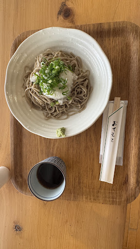 道の駅やパーキングとしては、素晴らしい👍 お出汁やおろしは、どうしてもパーキングクオリティだ。 だとしても十割蕎麦がこうして手軽に食べられるには嬉しい。 朝と昼と15時以降でメニューが変わる?選択出来ないものがあるので注意です。 おろしの辛味はなくて、ワサビが付いてきます。 蕎麦自体は、手打ちの店に比べて特徴はないです。出汁が少し甘くて蕎麦の香りを感じられません。 残念な点は、鰹節がかかっていません。