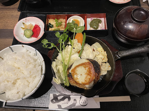 鶏肉のハンバーグも初めて食べましたが、中にキノコなども入り、あっさりしていて、とても美味しい。チーズが乗ってあるのも最高です。ボリュームも満点。 特製のハンバーグソースも、鶏肉との相性は抜群。