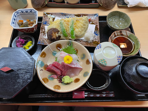 平日のランチで利用させていただきました。前日に席の予約をして訪れましたが、予約をして正解でした。平日だけど地元の人で賑わっていて12:30頃に満席になりました。 お店は中心にカウンターがあり、座敷席と2階にもいくつか部屋があります。カウンター席は目の前に鮮魚の切り身が冷蔵ケースに並んでいてお寿司や刺身が美味しいんだろうなと思います。まさ御前を注文しましたが刺身と天ぷらの入ったスタンダードな定食です。刺身もタイ、はまち、マグロ赤身と標準的なラインナップですが新鮮で美味しかったです。天ぷらは甘めの天つゆに少し驚きましたがこの地域の味なのかもしれないですね。甘いてんつゆも良かったです。 その他のランチメニューもいろいろあって、安い値段設定なので人気なんだと理解しました。 湖西道路から少しJR側に入ったわかりにくい場所にありますが、駐車スペースも確保されているのでドライブ途中の食事にも利用できますが、前途のように人気なの...