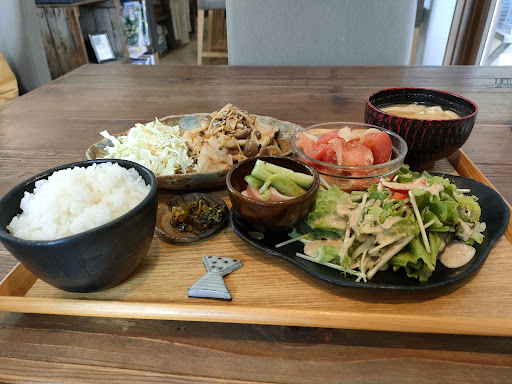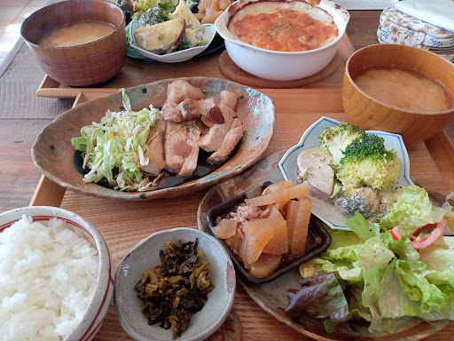 Read moreワンコを2匹連れて再来店しました。 土曜日なのに案外空いてました。 今日はグラタンランチにしました。 グラタンは海老、キノコ、マカロニ等が入っているホワイトソースのグラタンでした。 冷奴、タコのカルパッチョ、サラダ、味噌汁もセットでした。 味噌汁以外は全部、美味しかったです。