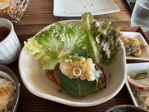 Read more古民家カフェでセンスがいい手作り感が可愛い二階建てのカフェ。ランチが4種類から選べて、パスタが二種類、和食の定食が1種類、カレーから選べて、パスタランチは、単品に前菜、サラダ付き、前菜、サラダ、デザート、スープ付きと選べる。 和食定食はメインが2種類、小鉢と汁物があり、ボリュームたっぷりで二人で食べてちょうどいいくらい。 お味噌汁がすごく美味しいお出汁でどれもすごく美味しかった。