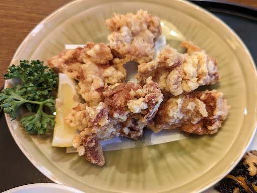 Read more2023/05ゴールデンウィーク12:30、座席は空いているけどスタッフが少な目で15分程待ちました。高槻温泉唐揚げ御膳をオーダー。唐揚げは中サイズ5個、味は濃すぎなくてサクサクで良い感じです。ご飯の炊き方も良いと思います。小さ目ですがお代わり2杯まで可能。味噌汁の味加減も良い。おひやの他に温泉水(結構硫黄臭がするので、食事には合わない)も飲むことができる。 相方がオーダーした海鮮丼は美味しかったとの事ですが、男性の私から見ると...