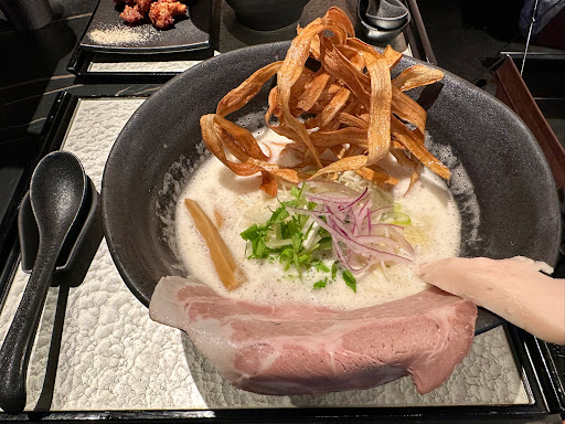 まぁ自分は単にラメーン屋にラメーンしに入っただけなので空間のラグジュアリー感とスタッフさんの温度差に「ン…???」くらいでしたが、もし雰囲気も求めて入るならガッカリするかもw(ラーメン屋に雰囲気#とは) いや店の雰囲気すごいいいのに落差が過ぎてw オープンカウンターなんで仕方ないちゃ仕方ないんですが、いやなんかあんまりにも内装との違和感がすごすぎて… あれが一般的なラーメン屋の内装イメージでなら何とも思わないんでしょうけど、あんな小料理店みたいな格式高そうな内装からのスタッフさんらのしょーもない大声の雑談でなんか…チグハグ感がすごくて…w せめてみんなもうちょい声のトーン落とせばいいんじゃないかなぁ