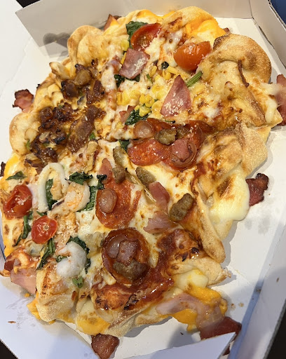 (すみません。英語を書いています。日本語が下手です.) We weren't expecting much from another Japan chain/franchise pizza shop. But, the pizza was better than we expected. Definitely better than "PH" or "PL". (However, not as good as the brick-oven style pizza from almost any decent Italian restaurant here.) We now make this our 1st choice for chainstore pizza. The BIG NEW YORKER was an especially pleasant surprise. It's not quite as big as a real New York City pizza. But, it's huge by Japan standards. And, obviously, it's not as good as genuine New York City pizza. But, it is the closest thing to real NYC pizza that I've found in this area. (There are authentic NY style pizza places in Osaka City and Kobe. But, that's a bit of a trek...