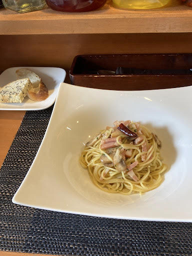 しっかりとオイルにガーリックと唐辛子の辛みもでており、パスタともよく絡みます。 パスタはすごいムチムチというか生麺のような食感で、あれは家ではできないとてもいい美味しい仕上がりです。