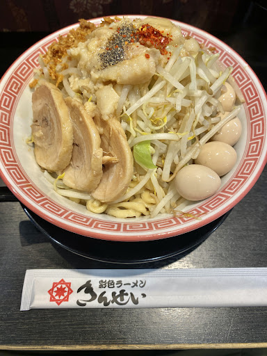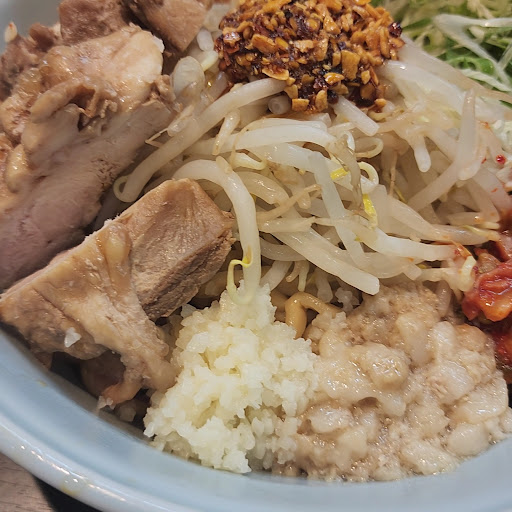 きんせいグループの二郎インスパイアの店。まぜそば用のフライドオニオンをラーメンに追加してもらって食べるのがうまい、、、だったのだが、久しぶりに行くと、まぜそば用なのでラーメンには付けられませんと断られるようになってしまって非常に残念。有料でもいいからまたラーメンにも付けられるようになって欲しい。ラーメンやまぜそばは小中大が選べるが、量が増えるほどに麺を上げる箸が重くなり、ハードな筋トレになる。9月限定麺の「おろとん」はおろしと角煮カツ(チャーシューにも変更できる)という珍しい組合せ。うっかり大を頼んでしまい、腕のプルプルと戦いながら食しました。角煮カツはトンカツとマグロカツの中間のような感じで面白いです。以前は大を選ぶとヒイヒイ言いながら食べていましたが、量が減ったのかあっさり食べきることができました。まぜそばではないのに汁の量も少なかった気がします。女性の店員さんが2人で厨房を回していましたが、カウンター上の掃除をしないため、ラーメンやグラスが長時間放置されていたり、器の跡だらけだったりと衛生面はイマイチでした。オープンからだいぶ時間が経ったので、色々と質が落ちていると感じました。 さらに後日、今度はフライドオニオンが欲しかったのでおろとんの角煮かつ2枚でまぜそばとフライドオニオンを注文しました。するとしばらくして「フライドオニオンはまぜそばにしか付けられないのですが」と店員さん。「???」と思いながらまぜそばにしてくださいと伝える。そして出てきたのは「普通のまぜそば」。確認すると「限定はラーメンしかできないんですよ」とのこと。先に言って!!!と怒りに震えながらおろしも角煮カツも入っていないただのまぜそばを美味しくいただきました。そしてやっぱりオープン当初と比べてかなり麺の量とスープの量は減っているなと感じました。...