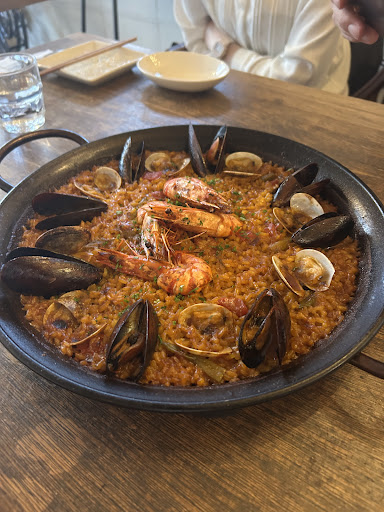 Read more近場で気軽にパエリアが食べれて嬉しい。 かなりお洒落な店内で、お客さんも何だかリア充で、普段ならお一人様では近付かない系統のお店なのですが、パエリアのランチを食べに足繁く通っております。 料理については文句ありません。パエリアは1人で食べれる物が3種類。2人あるいは3人以上じゃないと頼めないコースのものがさらに数種類。ミトンをつけて鉄皿をガッと掴んで頬張るのが至福です。 前菜は毎回説明があります。何故か推してくる特別マヨネーズも好みの味です。 店主が旅行中に思いついた唐揚げも皮までカリッとお肉はジューシーで、ポテトサラダはロシア風です。 壁際の本を手にとり、ゆっくりとくつろぎたくなるこの店の減点ポイントは席です。 椅子はバラバラで物によっては堅く。中席のあたりは机とのバランスがイマイチでかがみぎみになります。呑み会には丁度良いのかもしれません。 ともあれ、そろそろコースにしかないパエリアを制覇したいので...