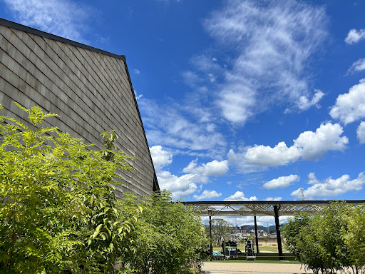 公園内のガラス貼りのお店で、外の景色が気持ちいいです。雨でもゆっくり楽しめます。土日でも、公園のイベントのない日の午前なら広々と店内の席を利用できます。お店の北側目の前に大きな屋根付きの人工芝とベンチがあります。テイクアウトで利用される方が多いです。店内の北側ならJR京都線、貨物、南側なら阪急電車を見ることができ、のんびり過ごすのに最適です。南側は公園の有料駐車場です。