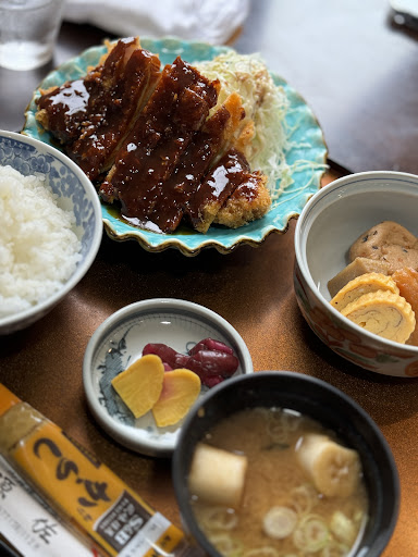 ●2回目の訪問 午後1時過ぎに昼飯にと突入、 地元の人で満員です。 急いでいたので、カツ丼を注文。 卵とじの甘辛いこの地方のスタンダードなものです。 食べ始めると掘っても掘っても御飯が出て来ません。カツだらけ! 何枚のカツが乗っかってるのやら(笑) なんとか食べ終えお腹が一杯になりました。大盛りなんて頼んだら大変です。 美...