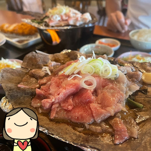I highly recommended this restaurant. Check the website since it is closed on Wednesday. On other days, it is closed by 8pm. After driving a short distance to the beautiful waterfall on the road up the hill behind the restaurant, we ate a delicious meal. Everyone can find something to eat on the extensive menu (tempura, soba, fried chicken, etc). One family member is vegetarian, so he ordered udon with sansei (vegetables). I ordered the Higa beef misoyo set meal, which comes with a shredded cabbage mini-salad, two kinds of pickles, rice, miso soup. I cooked the beef and vegetable by mixing together with my chopsticks on a flat small hot stone grill, about the length of chopsticks. The miso flavor on the beef and vegetables was delicious. I’m very glad I tried this since I don’t eat beef very often. Another person enjoyed the Anki special set which had a mix of different items (mini-bowl of beef, 2 pieces of chicken, rice, salad, pickles, etc. ) Be aware that this special set meal is only printed in the Japanese menu. The English menu doesn’t show this special set. The photo shows the beef...
