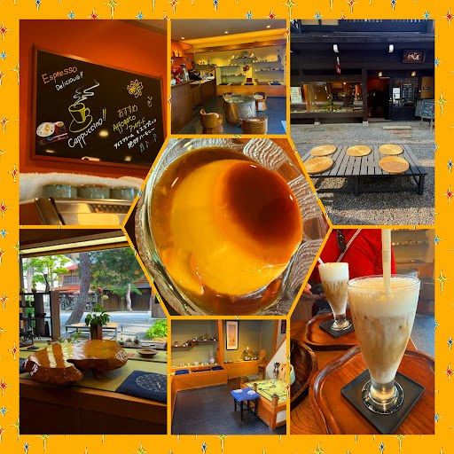 I came to Sakurayama Hachimangu Shrine on Friday, April 25, 2025. My husband came into this shop to look at the pottery. He found houseowners making coffee. And he saw a customer ordering pudding. Looks absolutely delicious! He quickly called us, the mother and her two children, who had already walked away, back!