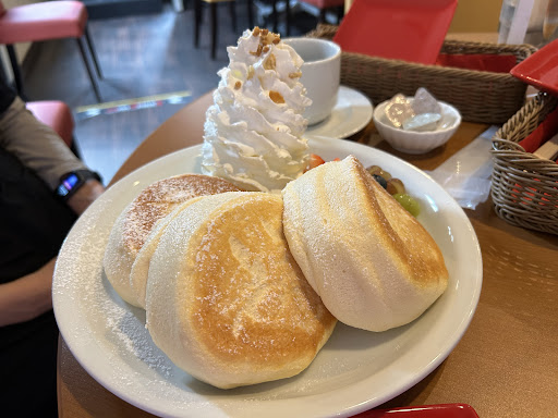 Read more奥飛騨温泉郷からの帰り道に立ち寄りました。郊外なので駐車場があるのが嬉しい。パンケーキとチーズデミハンバーグランチを注文しました。どちらもドリンクは割安価格で追加できます。 パンケーキはふわふわもこもこでかなりボリュームあり。生クリームも大盛りで倒れてくるほど😂 ハンバーグも肉汁ジワーでサラダも瑞々しく美味しかったです。 次回はフレンチト...