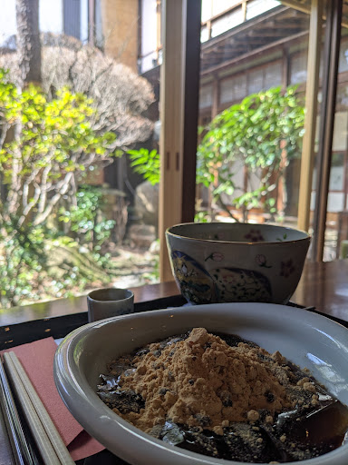Really delicious food, amazing space, and friendly staff! The cafe surrounds a beautiful courtyard you can enjoy while eating/drinking... It's not on a main road so it isn't too crowded either, so it's a nice break from the crowds of tourists in other cafes in Takayama. It's in an older building too, so it's a nice way to see inside a traditional "old house" of Takayama. Really decent prices too, and their matcha seems very high quality. They also have a large selection of vegan options (any of their coffee or tea lattes can be made with soy milk, and as of March 2023 they seem to have a vegan (or at the very least dairy-free) soft serve.) The staff are also very friendly here... They don't rush you at all and are always attentive. They also being you nice black tea after you're finished with your main drink/dessert! This cafe is right next to the showa museum so I highly recommend stopping in for a rest! I think it's a must see/experience while in Takayama (particularly if you like warabi mochi and/or matcha!)