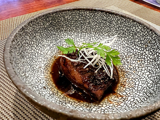 We had many courses, a wide range of flavors, fish and beef dishes, with a wide range of matching local sake. So many dishes stood out that it is hard to know which to mention. The fried whole fish was excellent. The gelato dessert was made from vegetable and sugar ONLY, nothing else, and was incredible. The two types of steak were top notch. The sake pairings were pitch perfect. The grilled miso dish was rich and delicious. And the round plate of wild vegetables provided a wide range of flavors and treatments of the selections.