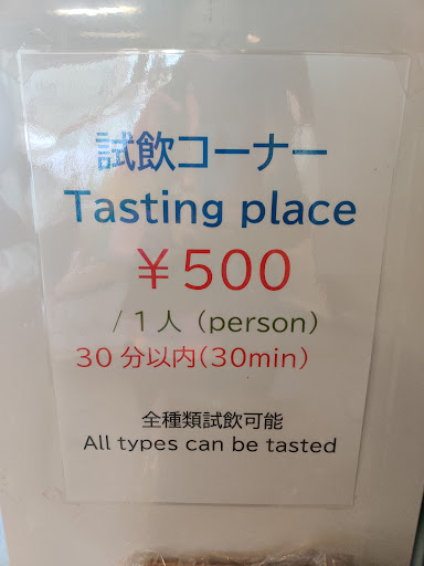 ย ย ย Read moreยฅ500/person for a 30 min tasting, with English descriptions and recommendations available. Totally worth it, with about 25 total kinds to sample! The service was excellent and super informative. We probably tried 15 during the time allotted. Also very affordable bottles to buy...