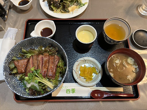 Read more1年越しの再訪です。 夜の営業時間1番に入店。 オーダーしたのは「ステーキ御膳」?だったかな。2800円です。 熱々の鉄板に飛騨牛ご鎮座、エビフライ、カニクリームコロッケ、ヒレカツ、茶碗蒸しと食べ応え十分です。 味噌汁は出汁感も強く非常に美味し、 茶碗蒸しは薄味で少々物足りません。 ご飯はお粥一歩手前の柔柔なものでした。アレでカレーにも使うのかなぁ? でも、コスパは非常に良いと思います。