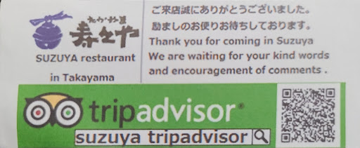 To Suzuya restaurant, thank you for your friendly and amazing service and delicious food. We have this wonderful memory visiting Takayama...