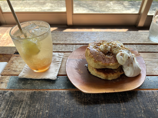 バナナパンケーキと自家製ジンジャエールを注文。 パンケーキは中身がしっかり詰まってる系のまぁまぁ食べ応えありで小麦の風味もしっかり感じました。とても美味しかったです! 逆にふわトロ系を想像して食べると期待外れと感じてしまうのかもしれません。