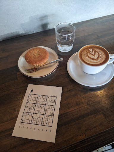 Read moreI believe this was one of my best coffeeshops experiences ever! It was a sunny day where I was looking for a nice coffeeshop to figure out my days itinerary and then the staff hands me a sudoku and says if you solve it you get a prize! My eyes lit up and tried to figure out how to solve it even tho I have never solved one before. 20mins go by and I end up solving it, the staff checks it and it was correct! And then he made me pick one of the prizes and it was a... I'll let you find out when you go visit! 😄 Coffee was great! Cake was goood and staff very friendly and even gave me suggestions of places to visit...