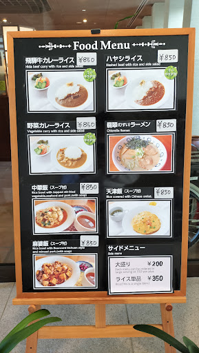 お食事(カレーやパスタ、ラーメン)とカフェメニュー(ワッフルやコーヒーなど)あります。お味はまぁ、うん、という感じですが安いです。飛騨牛カレーとか町中で食べたら1200~1500円ぐらい取られない?と思いきや750円ですよ、びっくり。今回頂いたワッフル(ダブル)もアイスコーヒーとセットで1150円ですし。一般的なカフェでご飯食べようと思う価格帯よりも安いと思います。味はそこそこですが価格から言うと文句のつけようがないです😊。 お会計はカードとバ...