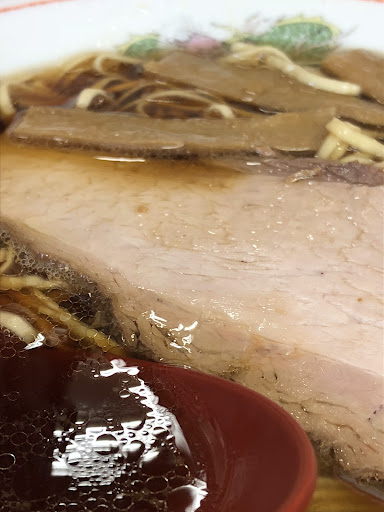 チャーシューは大きめで薄く切ったものが1枚。味は普通で取り立てていうほどのものではありませんてした。 背脂は本場尾道ラーメンに比べると少なめかもしれません。あまり浮いてませんでした。