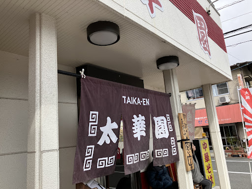 待ってる間に店構えを見ましたが、店の規模は街中華という感じです。個人経営なのでそれほど大きくなくて、駐車場は店の前に2台、ほんの少し離れた月極駐車場のようなところに4~5台停めれるスペースがあります。 私達が到着した時点で駐車場はすでに満車でしたが、これは予め予想できたので、道の駅「たけはら」に停めて歩いて行きました。ちなみに道の駅から太華園までは徒歩で12分位かかります。市内には他にも駐車場があるので、そちらでもいいかもしれません。