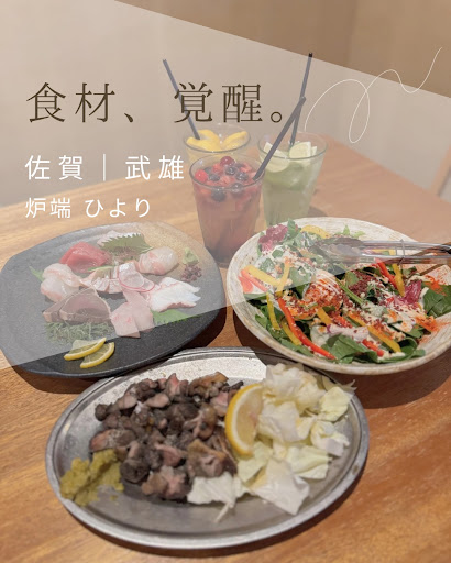 Read more炭火の魔法、食材が目を覚ます❤️🔥 【炭火×旬食材】炉端焼きと新鮮魚介のお店です🔥 🍹 凍らせフルーツのノンアルサワー 果実をそのまま凍らせたノンアルサワーは、 見た目も味わいも爽快感たっぷり🍃 🍋レモン:キュッと爽快 🍋🟩ライム:ほんのり苦くて大人の味 🍓ベリー:ストロベリー・ブルーベリー・チェリーの果肉がゴロッと🍒最後まで美味しい 「見て楽しい、飲んで爽やか、食べて美味しい」三拍子そろった気分上がるノンアル🙌 🥗 シーザーサラダ シャキシャキな新鮮お野菜にスパイス&半熟卵💛 中央にたたずむ半熟卵は、とろける黄身がまるでソースのようにサラダ全体を包み込み、後半の味変としても活躍。 「サラダだけでお腹いっぱいになりたい」と言わせるクオリティ💯 🐟 刺身盛り合わせ 九州近海で獲れた旬の魚を贅沢に盛り合わせた一皿は、どれから食べるか迷うほど。 脂がのった切り身が口の中でとろけて、日本酒が恋しくなる最高のペアリング。 🔥 炭火もも焼き 炭火の香ばしさがジュワッと広がる! 噛むほどにあふれる鶏の旨みと、程よい弾力がクセになる。 高火力で一気に焼き上げた香りと食感がたまらなくて、お酒もごはんも進みまくる一皿。 🍖 スペアリブ 甘辛ダレ×肉厚ジューシー! 「豪快にかぶりつく幸せ」が味わえる大満足の一皿‼️ 🥚 だし巻き玉子 まるで和のスフレ💛箸を入れるとふんわりほどけて優しい甘さと出汁の旨みが口いっぱいに広がる絶品のひと品✨ 🍢 炭火串焼き(ハツ・バラ・皮) ぷりぷり・ジューシー・カリカリ!居酒屋行くと食べたくなる定番の味!串もドリンクも進みます🍻 🍗 手羽先の黒胡椒揚げ パリッと香ばしい衣に、黒胡椒がピリッと効いたクセになる味! 一口かじれば、ジュワッと広がる旨み。おつまみにもごはんにも最高で、気づけば骨だけ。 これは手が止まらない“危険なウマさ”です🤏 🍷...