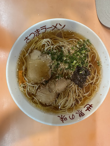 Read more武雄市下西山、国道35号線沿いにあるラーメン屋です。店内はカウンター席と小上がり席で十数人分といった小さなお店です。駐車スペースは店舗の東側に数台分確保されています。さて「ラーメン」ですが、今回は基本の「とんこつ味」を頂きました。あっさり円やかな食感が特徴の白濁系とんこつスープとなっています。麺は中太ストレート麺が使用されており、ツルツルとした食感が心地よいです。具はチャーシュー、海苔、ゴマ、ネギといった構成の一杯です。大盛り対応あり、替え玉制なしとなっています。ラーメンのバリエーションは「味噌味」「醤油味」も用意されており、それぞれトッピング違いの数種類が提供されています。その他の麺類は「ちゃんぽん」「焼きそば」程度、サイドメニューは「やきめし」「餃子」「めし」等があります。また、セットメニューは「ラーメン」と「やきめし」の組み合わせのセットがランチタイム限定で存在しています。 こちらのお店は、「世界の味」をキャッチフレーズとし、大分県に本部を置く「さつまラーメン」の武雄店となります。武雄の地に開業して約40年、気さくな老夫婦二人で営まれるこのお店も、後継者もなくこのまま静かに消え行く運命だそうです。また行くので、いつまでも...