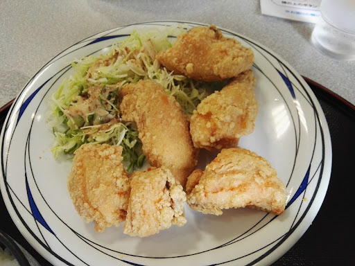 2022.7 いざ実食 ■からあげS定食¥1240 ごはん、ももからあげ1本、はねからあげ1本、鶏汁(大盛) いやデカイ。モモは熱くて舌ヤケドした。カブりついて食べるには大きい。バラして身だけ食すと下味ないので味付いた衣と食すべし。備え付けのナブキンで掴んで豪快に。 ごはんおかわりOKだけど、焚き加減がイマイチ。ちょっと糠臭いような、昨日のご飯の様な、そんな感じ。 これが無ければ☆4~4.5 ■とり天定食¥700 ごはん、とり天4ケ、鶏汁 思い描いたとり天ではなかった。ももの唐揚げかと勘違い。 いわゆる天ぷら衣で出汁にくぐらせて食べるイメージだった。 こっちの肉はしっかりした味もついて美味い。 小食なら良いがボリュームが少々足りないかな。 朝9時から開いているが、開店直後でテイクアウトの客対応もありで大忙しの様子でした。うまかったわ、ご馳走さま。