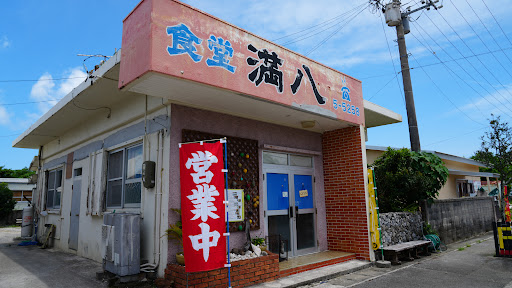 スーパーではさんぴん茶などドリンクを購入し、食堂は”満八”さんという食堂が営業していたので入店した。