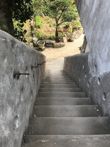 すごいきれいカフェですよね。^_^ I was happy to walk into such a beautiful place, and the view from where I sat was so pretty! They observe coronavirus prevention by having hand alcohol at the front, one that is motion censored so you don’t have to touch anything, and they check your temp too before you sit. I love the look of the water cup, I think it’s ryukyu glass; so beautiful. I got the tofu hamburg drink set, and it was just right and yummy for a late lunch. I would love to come again! I also liked reading about the history of the house, and how the Akayamas were royalty of Taketomijima; the first king of the line unified the land. The park where Nagomi tower is is called...