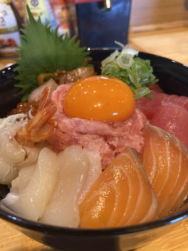 完成にグルメ帝王好みのビジュアルの濃厚たまごのたま割り海鮮丼1,408円