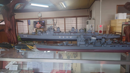 駐車場は10台は停めれないくらいの大きさで見た目よりも店内は広く、四人がけのテーブルが10脚程ありました。 奥にはお座敷もあるようです 結構年季の入った店内ですが綺麗にされています。 店主の好みなのか50cmを超える駆逐艦雪風や軽巡夕張のプラモや雷電、紫電改のプラモが飾ってました。