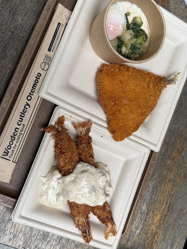 平日の13時頃に来店するもやはり遅かったのか、お目当てのお寿司は完売…。他の商品も1/3〜半分程は売切になっていたので、平日でも早めに行くことをオススメします。 海鮮丼とエビマヨを注文しましたが、海鮮丼の魚はまあまあで、ご飯は美味しくなかったです。美味しくない無洗米の味でした。エビマヨはエビが小指ほどの細さ、ほとんどが衣で、あれはやり過ぎだと思います。 またお隣の海小屋さんとは、お盆が違うようでそれぞれの店に返却しないといけないようなのですが、盆に店名などの記載が一切ないので、返すときに面倒でした。店内は狭く、導線も悪いため、数組のお客さんがいるだけでも、...