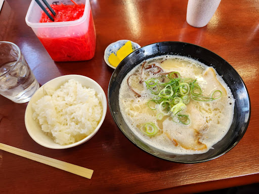 Read more連れが現場近くのラーメン屋をネットで調べてここに来たけど、この店なかなかやるよ。ひっきりなしに続く地元の客連中を見ただけで地元で愛されてる店だなと思ったし、中に入ると子供から大人まで幅広すぎ。やっぱりこの店人気なんだと思った。 韓国人四人と俺日本人の四人で入り、奥のテーブル2つに五人で全部使っていいよと言われ、聞き間違いかと思ったらそうじゃなくて、注文間違えてすぐに変更してもすぐに変えてくれて、ラーメンセット頼んで980円って書いてあるけど昼間のサービスランチってことで880円だったし、そもそも駐車場に間違えて入ったときから、俺等のこと見ててくれてそっち違う、こっちだよと指示してくれて、、、あの一人でホール取り仕切ってるマスクしたイケメンのお兄さん誰?完璧じゃん、頼んだの出てきてないのにまた来たくなった。そうそう、ラーメンセット(豚骨ラーメン、餃子4個、ご飯、タクワン)、豚骨スープはギトギトじゃなくてさっぱり系の何度行っても飽きないスープ。元祖長浜屋に似たスープ。何度も通うにはこのスープじゃないと飽きて通えないのなんで知ってる。あと、連れの韓国人はラーメンセットで特製ラーメンに変えて、一人は大盛りのラーメンセット、女性は特製ラーメン。みんな、小飯と言いながら思ったより飯が多いと喜んでた。客の心をくすぐるくすぐる、この店客の心知りすぎだろ。店の厨房とホールの一体感も良かった。美味しかった。俺の名店百選に載っけるのでよろしく。最後に、地元の若い客連中が食ってたチャー...