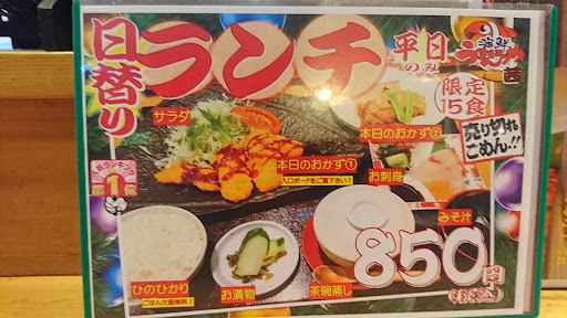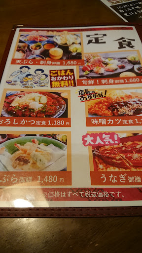 Read moreランチどきに行ったんで、かなり混み合ってて、店員さんもうっちゃう余裕なさそうだったんで、勝手にカウンター席に座っちゃいました。注文した後、ランチメニューの写真撮ってたら、店員さんがすっげ親し気に話しかけてきてくれて、おすすめメニューとかこだわりとかいろいろ話しかけてくれました。ランチ客が少なくなって余裕が出たからか、メニューの写真撮ってたせいか分かりませんが、ちょちしたたかさを感じました(笑)。魚も肉も頂ける日替わりランチがイチオシだったそうですが、自分はおろしとんかつ定食頂きました。脂身の少なくて分厚い(1.5cmくらい?)肉は軟らかくてすっげおいしかったです。味つけも居酒屋ならでわのおいしさでした。定食のごはんはおかわり自由で、頼んだら先ほどの親し気な店員さんはサービスで超大盛にしてくれました(笑)。ホットのみですが、ランチにはセルフですが無料のコーヒーがついていました。とってもおいしかったの...