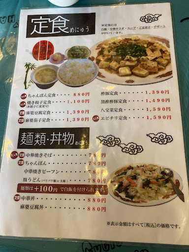 中国人の女将さんお一人で営まれています。ちゃんぽんをいただきました。お昼時なのに最初は私1人だけだったので失敗したかと思いましたが、ちゃんぽんは海鮮も入っていて美味しかったです。佐賀のちゃんぽんよりは長崎寄りのちゃんぽんですね。 後から6人の団体さんが入店して安心しました。クチコミを見ると、麻婆豆腐がおいしそうですね。ちょっと高いけど。次回...