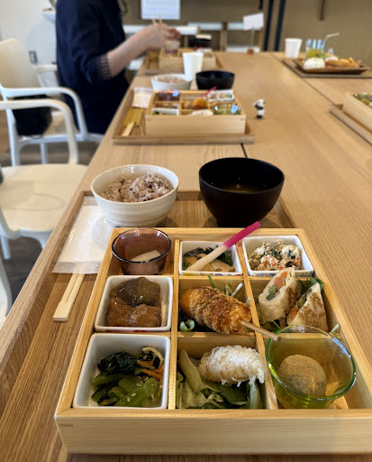 月替りランチを頂きました。 身体にとても優しそうなお料理が少しずつ9種類、格子の器に盛り付けられて提供されます。どのお料理も美味しかったです。