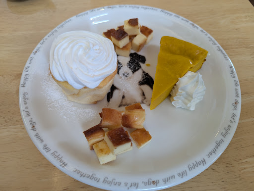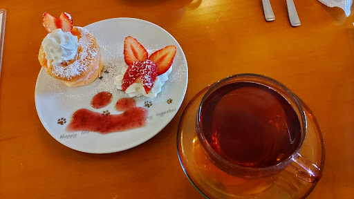 Read more同行者が犬猫が好きなので来店。 駐車場がイマイチわかりづらかった覚えがあります。 最初に提供されるお水のコップには、犬が印刷されている手の細かさ。