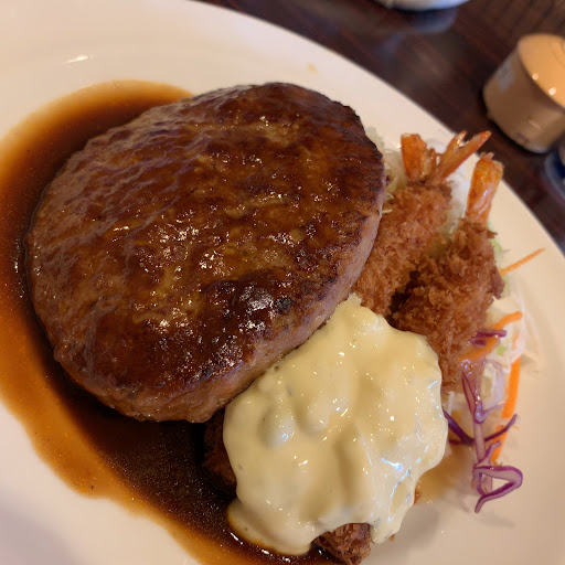 またまたお邪魔してきました。職場の近くなのでコンビニ飯とかに飽きたら行くので多分…3ヶ月に一度は行くかな❓肉肉しいステーキ食べたかったが🥩なかった…のでハンバーグ食べました。安定して美...