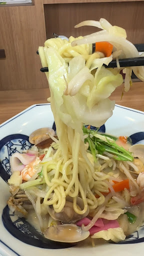 休日の昼間に利用しました。注文・料理を持って来て下さった店員さんがお年を召したおじさん、おばさんだったのにはちょっとびっくりしました。 「ちゃんぽん+Aセット(餃子5個)」を食べました。至ってどこにでもある安定のリンガーハットの味、美味しかったです。ここの餃子にはニンニクが入っていないのが特にお気に入りで、その後の人との面会が気になりません。 今回は2人で入店したので、四角いテーブルひとつに対面するように着席しましたけど、テーブルが狭いです。そこにでっかい水差し(ピッチャー)がドンと置いてあって、余計に狭く感じました。もう少しテーブルの広いものを備えて貰えれば★5個です...