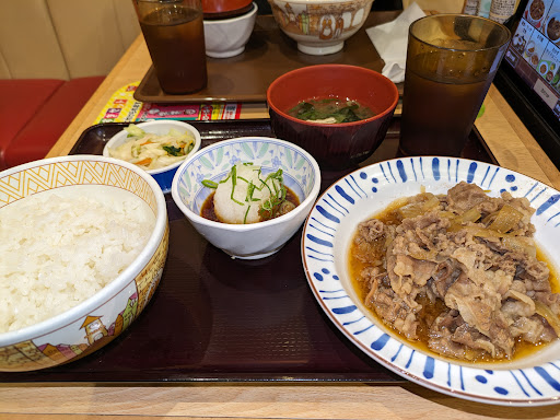 時々テイクアウトで利用するのですが、今回は店内を利用しました。 おろしポン酢牛皿定食(中盛)を食べました。タブレットで注文した後、すぐに定食を持って来られたのですが、『???』お盆の上にはご飯と牛皿と大根おろししかのっていません。従業員の方に『あの・・・お味噌汁とお漬物がないと思うのですが・・・』と伝えると、『あっ!!』と言われ『すぐにお持ち致します』と言われ、お味噌汁とお漬物を持って来られました。 おろしポン酢牛皿定食(中盛)を初めて頂きまし...