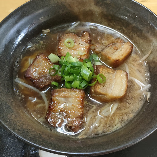 ワクワクドキドキで扉をオープン! 先客が1名おられたが、ひっそりした店内 「いらっしゃい」の声も無い わからず奥へ進むと店員が2名 「あの〜注文は…?」と声を掛けると「好きな席に座ってくれ!」とのこと 何とも不思議ワールドな空間に入った感じ 着席してメニューを見るとラーメンその他、中華やカレーなど単品や定食が何品かある そのどれも値段が安い! 今回はラーメンセット¥600! ラーメンは醤油か豚骨醤油が選べる それに小鉢、ライス、漬物 5分程で着丼されたが、それも無言で、のそぉ〜っと置かれたので半分、気づかなかった。 さて実食! 豚骨醤油ラーメンのスープは少し塩っけが強い濃いめの味 麺は中細ストレートでマズマズの感触 トッピングは小ぶりなチャーシュー2枚、ゆで卵半切れ、モヤシ、なると、ネギ 小鉢はひじき煮だった ま、味や接客をウンヌン言うよりコスパ評価が良いショップ