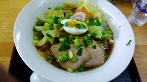 以前から一度来てみたかった宇野港ラーメンさんを訪問です。ガラスサッシの引き戸を開けると、6人掛けと4人掛けテーブル席が数席あり近隣の会社の方々が食事をされています。席に着き水を持ってきてくださった店員さんに「野菜たっぷりらーめん」を醤油で注文。後から入って来られたら常連さんらしきお客さん達はランチを注文されています。メニュー表にはありませんがよく見ると、壁に日替わりが貼られています。そんな観察をしていると10分少々で着盆です。んっ()・・・丼のフチには汁が飛び散っていて、短冊状のネギが一枚寂しそうに貼り付いています。。んー、何とも違う意味でのvisual抜群。キャベツが沢山と人参が入り、食べるとよく煮込んだ食感でしなしなです。いい表現をすると中本の蒙古タンメン風で、逆の表現は前の人が食べた丼を洗わないで盛り付けた感じ。箸で麺を引き出そうとするのですが絡まってなかなか出てきません。なんとか引っ張り出して口に入れると想像通り柔いですー(^^;)。スパムが2枚入っているのかと思っていたらそうではなく、モモ肉チャーシューで薄味です。食べても食べても減らない、しなしなキャベツを食べていると、ジャリっと違和感を感じ口から出すと玉子の殻です(`´)。麺を表面に出すため、ひたすらキャベツを食べ続けると小さなナルトが1枚残ります。スープが出てきたのでレンゲで頂くと醤油の味です。店員さんはサバサバして感じがよく、この辺りは食堂が無いので近隣で働く方々には貴重なお店なんだ...