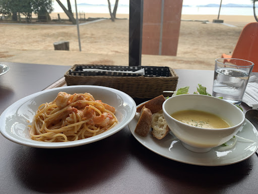 Read more母娘の2人でランチでお邪魔しました。 女性の方が受付から料理まで全てしていたようですが、とても感じが良かったです。 日替わりパスタとカフェオレとケーキのセットはプラス300円で、クリームたっぷりのホットココアはセットではなく単品になりました。パスタの味は濃すぎず薄すぎずちょうどいい感じで、最後まで美味しくいただきました。バゲットもおいしかったです。 カフェオレとココアは、ごくごく飲める程度の暖かさで、私はもう少し熱いのが好みですが、娘は猫舌なので丁度いいと喜んでいました。 席も色々とあり、海に向かって座る席を選びました。とてものんびりした時間を過ごせました。ま...