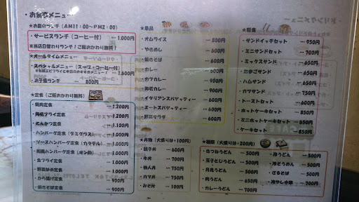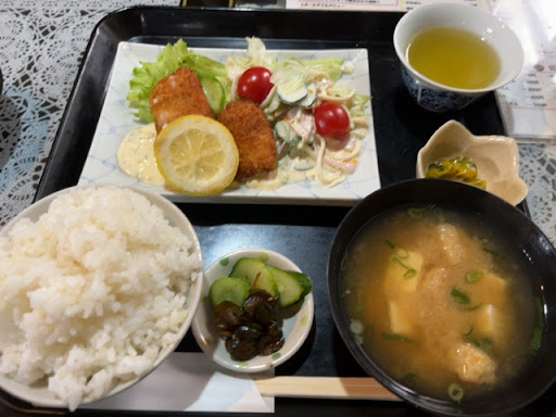 Read more城崎温泉の帰りに寄ってみました。 もう14時過ぎていたしお腹も空いていたので、寄せてもらいました。 外観、車で走ってたら見逃してしまいました。 昭和レトロな喫茶店て感じです。 唐揚げ定食と海老フライ定食を頼みました。おばちゃんとおばぁちゃんが営んでいるみたいで、出るまで少し時間かかります。 値段の割に高いかなっと感じました。 海老フライ自体は思ったよりは大きいけど、唐揚げは小さく量も少なかったです。 ランチ時間過ぎてた...