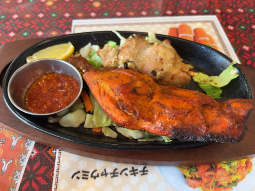 スペシャルタリセットを注文。 タンドリーチキンが熱々の状態で鉄板で供されるのが嬉しい。チキンの味もめっちゃ美味であった。野菜炒めが少し添えられているのも嬉しい。