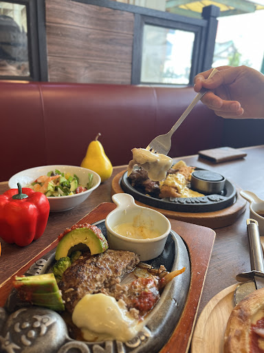 ブラックペッパーが効いててパンチがあるのがツボだった✨ ステーキのような食べ応えのあるハンバーグで、鉄板のおかげで最後まで熱々で食べられるのもよかったよ◎