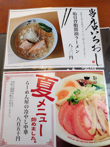 店内には、かなり大きな1枚板のテーブル5卓(座敷席で、6人でも余裕ありそう)とカウンター席6席くらいだったかな。 駐車場は道路際に2台、店舗脇を通って奥にいくと砂利の駐車場が。目立たないロープで一応区切ってある感じで、5.6台はとめられそうです。 味噌ラーメンと海老味噌ラーメンを食べました。 2つのラーメンの注文で、海老味噌ラーメンは早く来たのですが、味噌ラーメンが少し遅くて‥定食とかではなく同じジャンルの物が時間差あるのは初めての経験なので驚きました。 海老味噌ラーメンは生臭さが先立ち、後半は味を感じなくなってしまいました。下処理が少ないのかな? 初めての来店なので、店内を色々と観察したのですが‥‥‥。 店内、汚くないですか?障子が何枚かありましたが、黄ばんで剥がれかかっているトコロモありますし、障子の下の障子紙はカビていますよね?1番テーブルに近い所ですし、凄く気になります。他の障子もそうでした。張り替えないのなら、取り外して窓をピカピカにすればいいのではないでしょうか?窓も汚れてるよ。 テーブルのボタンで注文の際は店員さんを呼ぶようですが、接触不良なのか反応せず、仕方無しに「すみませーん」と呼びましたが、目が合うも来ず‥‥。え?今、目があったやんな?と不快に。その後何度かボタン連打したら反応して、店員さん来てくれました。 あと、厨房でおしゃべりしまくるなら、布マスクくらいしてほしい。 店長さんですか?メガネのオジサン店長さん。料理盛り付けしながらおしゃべりやめてくれないかな?駐車場から見える厨房のガラスも汚いよ。 金髪のお兄さん店員さん、若いからそうしたいのはわかるけど、長髪なんだから、頭に三角巾巻くとかタオル巻くとか清潔感持たせてもらえます?元気はあるんだけどね。 お姉さん店員さん、注文取りや配膳後に走るのやめたほうがいいよ。 ラーメンは普通に美味しいけど、雰囲気、環境で損している気がします。そこを改善したほうがいいと思います...